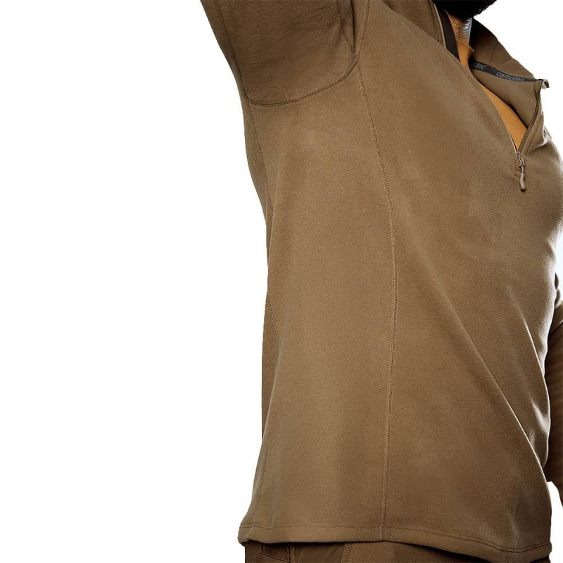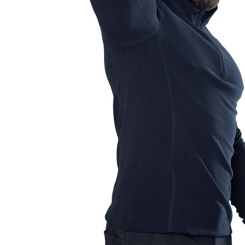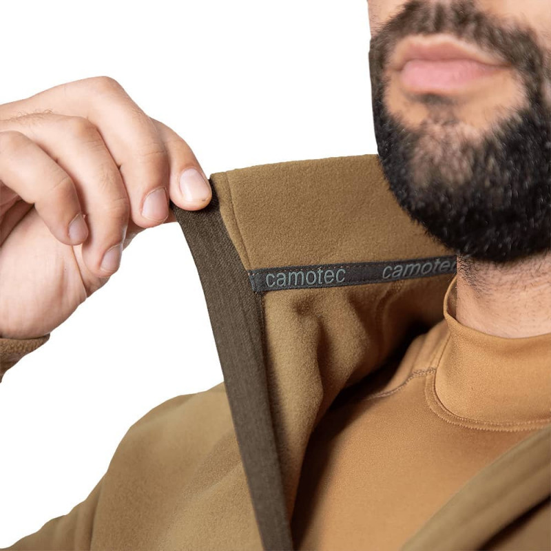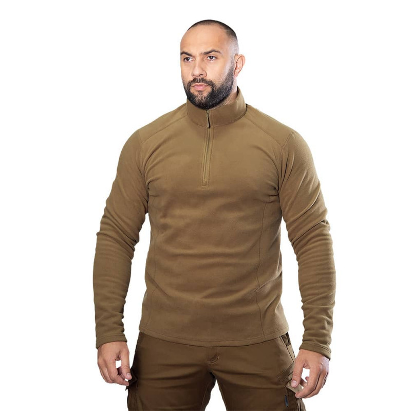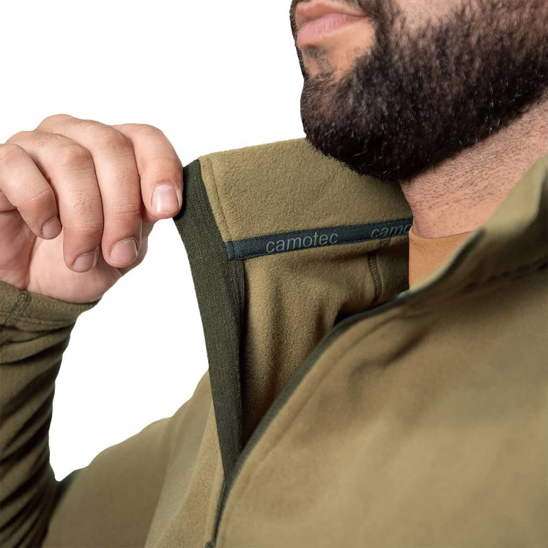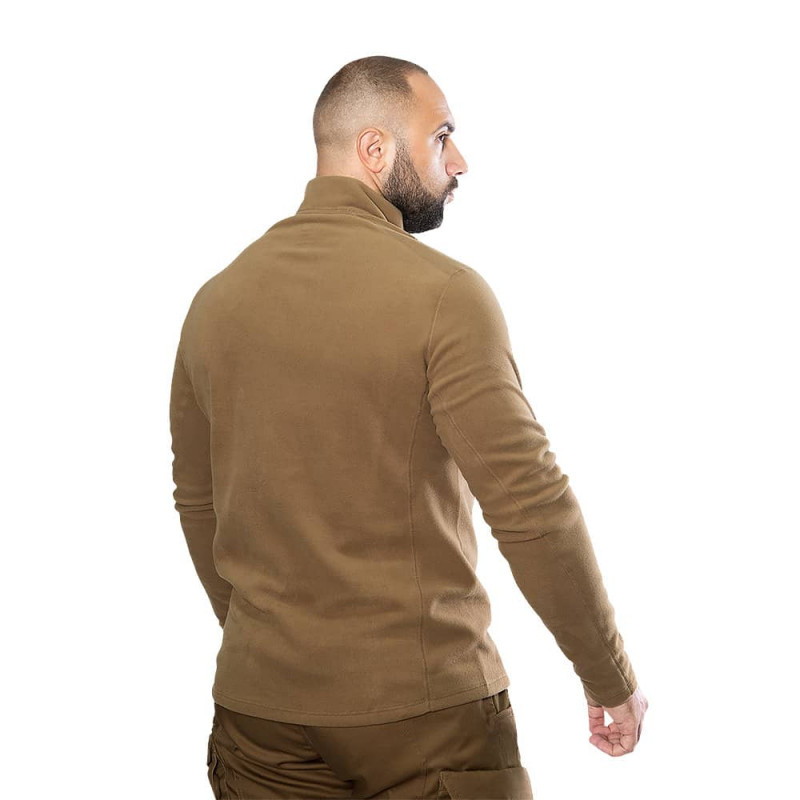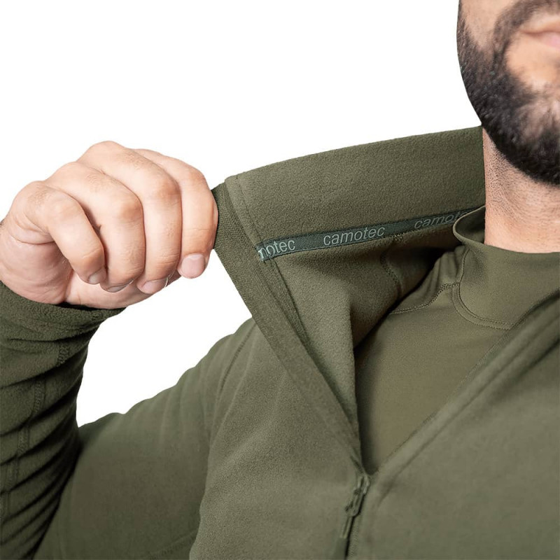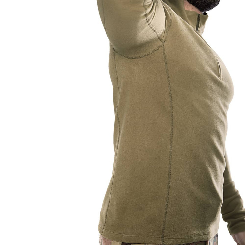Кофта виготовлена із інноваційної флісової тканини Himatec Air Basic 100, є 3-м шаром за системою ECWCS. Це легкий, флісовий і високотехнічний матеріал з високою ізоляцією, що відводить вологу. Має відмінну повітропроникність. Тканина швидко переносить вологу на зовнішню поверхню та розсіює її для швидкого випаровування. Кофта виготовлена в сучасному спортивному дизайні. Щільно прилягає до тіла, при цьому не сковуючи руху завдяки своїй еластичності. Покрій спроектований з урахуванням анатомії людини, має плоский шов, а плечовий шов усунутий для кращого комфорту під час носіння рюкзака. Кофта має прямий комір, що захищає шию від неприємного впливу холоду та вітру. Застібається на нейлонову застібку блискавку, що має планку з тканини DWB, для додаткового захисту від вітру та вологи. М'яка, еластична, легка та дуже зручна флісова кофта Hawk Himatec, яка зігріє вас під час навантажень із високою інтенсивністю, одночасно ефективно відводячи вологу від вашого тіла. Підійде як для активного відпочинку, так і для охоронних та силових структур. Ідеально підходить як шар, що утеплює, в концепції пошарового одягу.