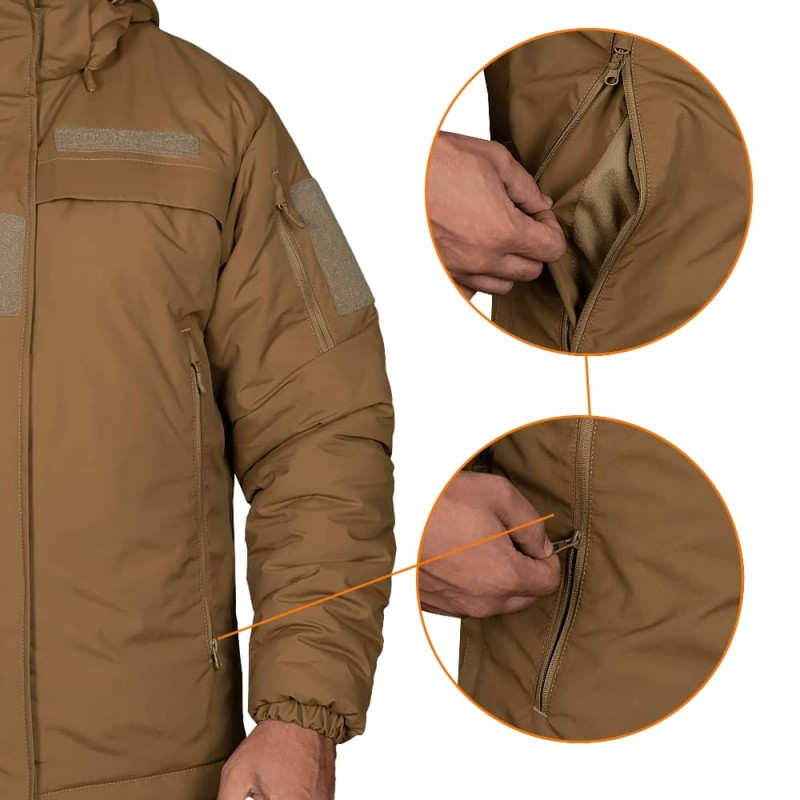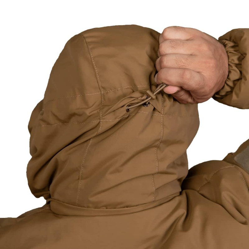 Тактичний комплект зимового одягу із теплозберігаючої тканини з гідрофобним просоченням. Складається зі зручної куртки зі швидким бічним доступом до обладнання та штанів зі знімними підтяжками. При виготовленні використана інноваційна тканина Nylon Taslan, яка забезпечує максимальну функціональність та захист. Верхній шар це унікальне поліамідне волокно на основі репсового плетіння ниток, яке є синонімом слова міцність. Нейлон має вологостійке просочення WR, щоб уберегти оператора від намокання, вітру та бруду. Тканина має PU напилення зсередини, що гарантує надійний захист від вітру та попадання вологи всередину. Ефективне збереження тепла забезпечить інноваційний утеплювач Temploft. Ефективну терморегуляцію забезпечують внутрішні камери, що зберігають тепле повітря. Матеріал легкий, є аналогом натурального пуху. Завдяки своїй структурі, Temploft не проходить через тканину, не намокає, а також має високу пружність. Усередині костюм має стьобану підкладку з приємного за тактильними відчуттями нейлону, який також запобігає збиванню утеплювача. Додатково тканина покрита гідрофобним просоченням, яке захищає від вологи, пилу та бруду. Куртка має анатомічний крій, що дозволяє вільно рухатися та відчувати комфорт за будь-яких обставин. Оснащена знімним утепленим капюшоном, який фіксується на блискавку і застібається на липучки, які можна заховати в спеціальних відділеннях у комірі. Зручний ергономічний дизайн дозволяє регулювати глибину, об'єм та ширину каптуру, а верхня кришка надає додатковий захист під час снігу та дощу. Попереду куртка має кишені із флісовою підкладкою, що дозволяє швидко зігріти руки. Крім цих кишень, є ще по одній кишені на рукавах, дві кишені на грудях із захисним клапаном, а також три внутрішні кишені. Також всі застібки мають захисні клапани, що захищають бігунок від вологи та бруду. Центральна застібка забезпечена клапаном, що захищає від бруду, вологи, вітру, має два бігунки для зручного використання. Липучки на рукавах та грудях призначені для кріплення шевронів, ID-патчів та погону. Також унизу куртка оснащена затяжками та фіксаторами корейського бренду Woojin. Штани виготовлені у сучасному дизайні, мають зручний, ергономічний крій з урахуванням анатомії людини. Оснащені широким утепленим поясом, який додатково захищає поперек від продування. Застібаються на блискавку із захистом від мимовільного розстібання, а також ще на дві металеві заклепки. Знизу об'єм штанин регулюється застібками блискавками з боків і додатково застібається на металеву заклепку. Головною особливістю цих штанів є утеплена спинка з підтяжками. Спинка надійно кріпиться ззаду штанів на застібку-блискавку та обладнана захисною планкою, що захищає від продування у місці з'єднання. Спереду підтяжки фіксуються на липучці. Самі підтяжки досить еластичні та мають спеціальні регулятори. Тому не складе ніяких труднощів відрегулювати їх під розмір оператора. Штани мають чотири кишені - дві класичні спереду, і дві з боків. Костюм Patrol Taslan стане вашим надійним захистом від негоди при виконанні спеціальних операцій воєнізованих та силових структур, на полюванні, рибалці або для використання на прогулянках на природі чи місті.