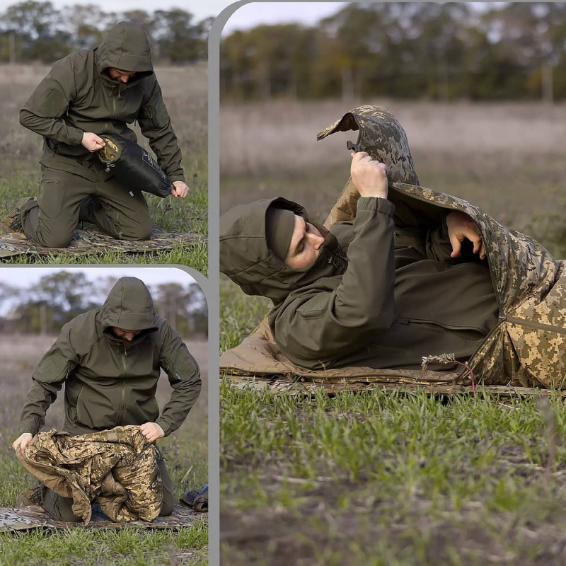 • Може використовуватися як аварійна куртка, спальний мішок або вкладка для спального мішка, ковдра, гамак-лайнер (ковдра) і т.д.