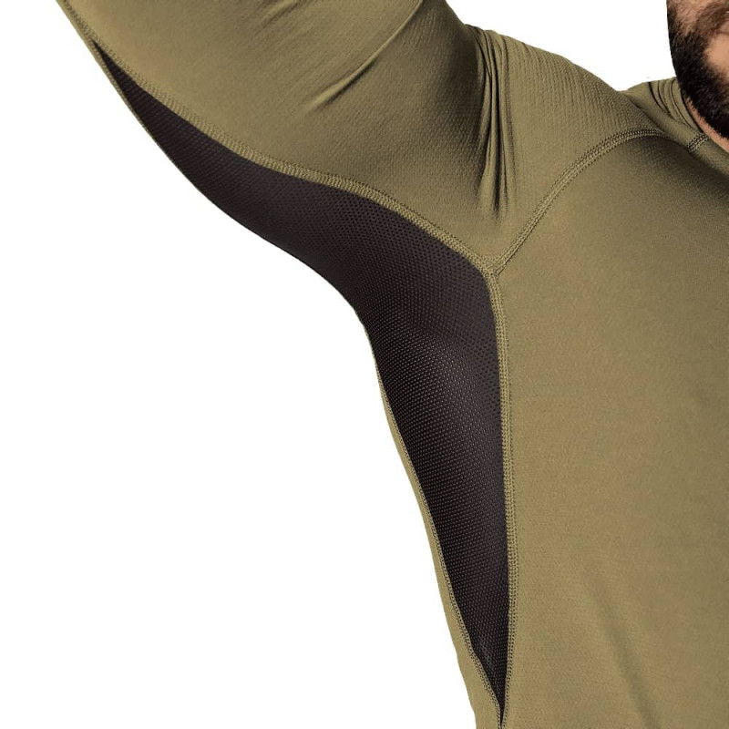 Термобілизна LVL1+ ThermoGrid - це комплект термобілизни 1-го шару за системою ECWCS, створений для забезпечення максимального комфорту під час активного руху та в умовах змінних температур. Виготовлений з високотехнологічної тканини CoolPass ThermoGrid, що поєднує відмінну повітропроникність, еластичність та зігрівальні властивості. Основою тканини є смарт волокна CoolPass®, які миттєво вбирають вологу з поверхні тіла і рівномірно розподіляють її по всій площині матеріалу. Це сприяє швидкому випаровуванню вологи, створюючи приємний ефект прохолоди, що допомагає підтримувати комфортну температуру тіла навіть під час інтенсивних фізичних навантажень. Тканина має тонке плетіння, що робить її майже непомітною на тілі, забезпечуючи повну свободу рухів. Зовнішня сторона оснащена мікроотворами, які покращують вентиляцію та забезпечують безперервну циркуляцію повітря, а внутрішня сторона оброблена технологією Brush - начісування, яка надає матеріалу м'якість та зберігає тепло, роблячи її особливо приємною на дотик. Також тканина містить спандекс, що забезпечує термобілизною додаткову еластичність та підвищує комфорт під час носіння. ThermoGrid має сучасний ергономічний дизайн розроблений з урахуванням анатомії людини. Для покращеної вентиляції в зонах підвищеного потовиділення під пахвами передбачені спеціальні вставки із перфорованої сітки Cool Mesh. Ці вставки забезпечують ефективну циркуляцію повітря, що додатково підвищує комфорт під час носіння. Це забезпечує ідеальну посадку на тілі та максимальну ефективність за будь-яких видів діяльності. Термобілизна ThermoGrid - це поєднання інноваційних технологій та комфорту, які зроблять ваше перебування в будь-яких умовах максимально приємним.