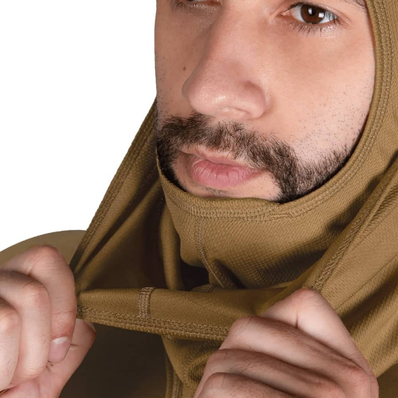 Легка, еластична та вологовідвідна балаклава з дихаючої тканини CoolPass. Тканина CoolPass Antistatic - це 4-х канальне, високотехнологічне, поліестерове полотно. Завдяки спеціальній структурі ефективно відводить вологу з поверхні шкіри та випаровує її зовні тканини, чим захищає організм від перегріву та залишає шкіру сухою. У плетінні є антистатична нитка, що сприяє розподілу і стіканню статистичного заряду з поверхні тканини, завдяки чому матеріал не електризується. Тканина не вигоряє, не мнеться і не сідає після прання. Антибактеріальне просочення запобігає поширенню бактерій на поверхні тканини, які створюють неприємний запах під час потовиділення. До складу просочення входять речовини, такі як іони срібла та міді, що вбивають або зупиняють розмноження бактерій. Балаклава із серії Pro має максимально ергономічний крій. Спроектована, щоб щільно облягати голову та не викликати дискомфорту. Нижня частина балаклави рухома, що дозволяє легко та швидко регулювати посадку на голову та змінювати конфігурацію носіння. Балаклава має плоскі шви, які гарантують високу міцність та відсутність дискомфорту та натирань при використанні зі шоломом. Мультифункціональність забезпечує можливість використання як підшоломника, шапки, маски або бафа. Розроблено спеціально для спекотної погоди. Захищає від пилу та високої температури на відкритій місцевості при виконанні тактичних завдань та активному відпочинку у теплий сезон.