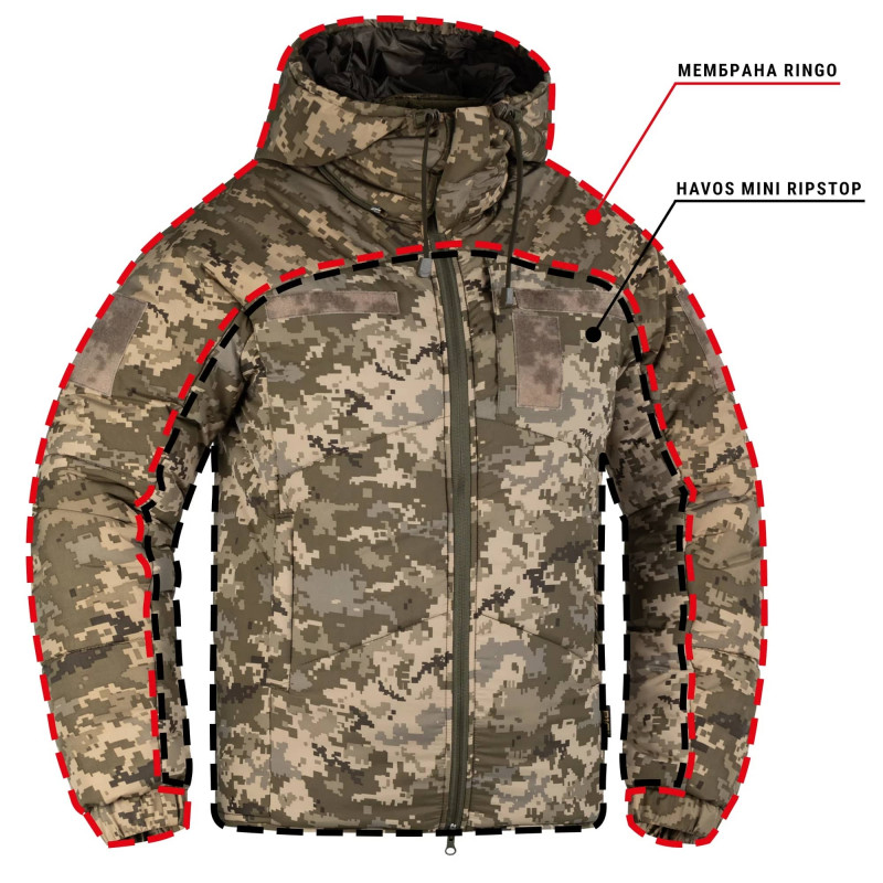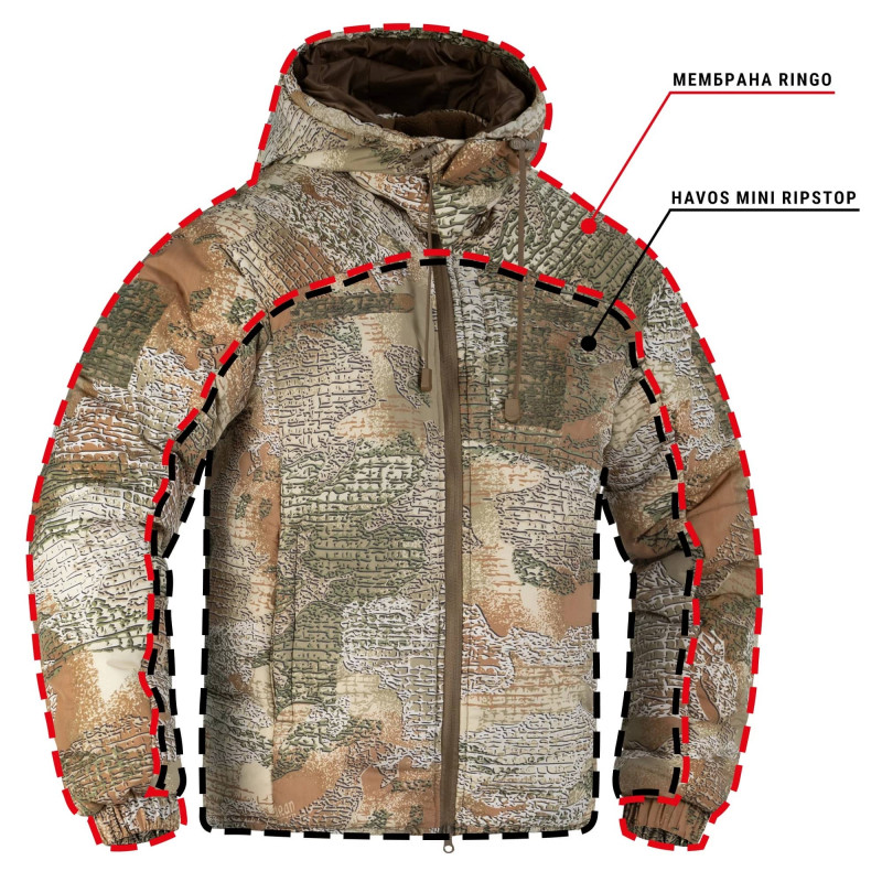 • Верхня зона та капюшон - мембрана Ringo (100% Нейлон, 90 г/м2)