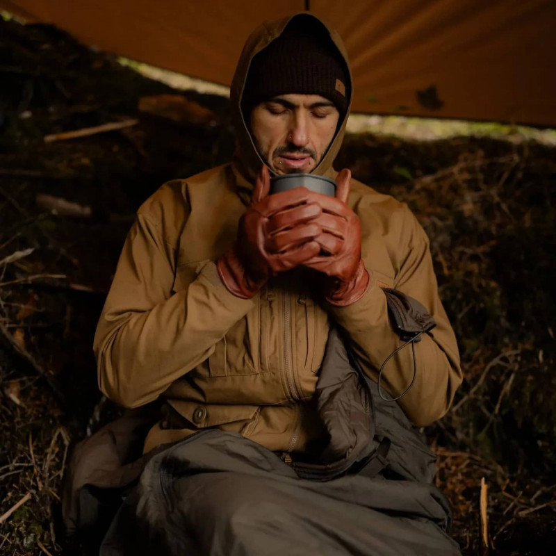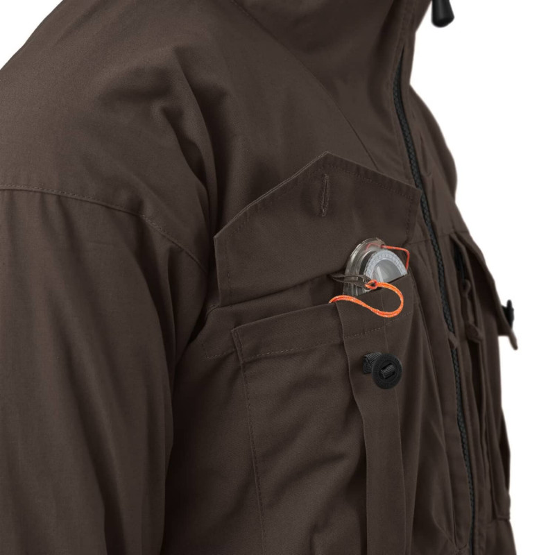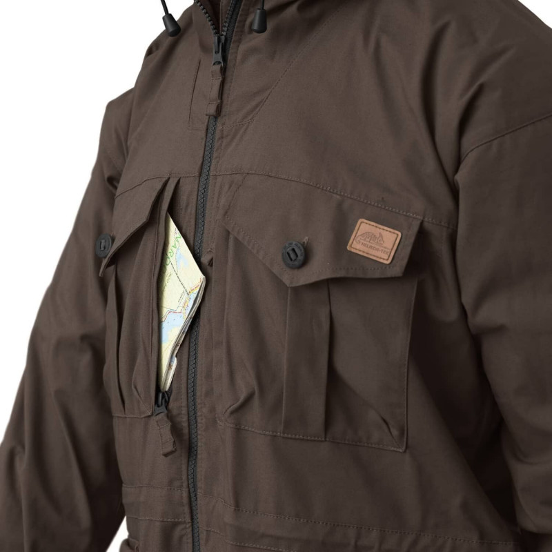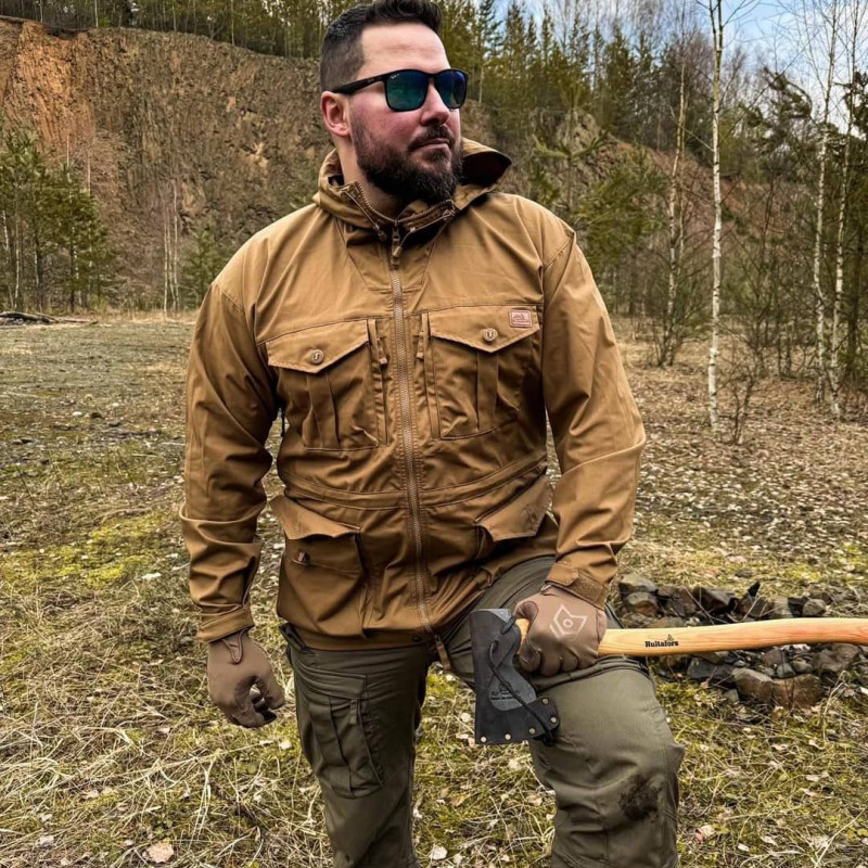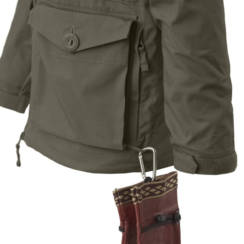 Військова куртка-змок із матеріалу Duracanvas®. Матеріал може бути оброблений воском для додаткового захисту від дощу та вологи, а також для підвищення зносостійкості. Модель натхненна легендарними куртками, які використовувалися, зокрема, підрозділами SAS у британській армії. Вільний крій дозволяє комбінувати декілька шарів одягу. Куртка оснащена вісьма місткими кишенями, включаючи дві похилих нагрудних кишені з канадськими гудзиками і дві кишені на стегнах з підкладкою з нейлонової сітки. Кожна нагрудна кишеня оснащена петлею для кріплення дрібних предметів, що запобігає їх втраті. Додаткові петлі для паракорду розташовані по обидва боки подолу куртки. Куртка застібається на двосторонню блискавку. Легкий каптур регулюється у двох напрямках, забезпечуючи точну посадку залежно від погодних умов та типу головного убору. Дві утяжки на талії та по нижньому краю куртки дозволяють регулювати посадку та запобігають протягам. Система вентиляції у пахвовій зоні забезпечують терморегуляцію. Легендарна військова куртка-змок, перероблена для бушкрафту, не тільки зберегла класичні елементи, але й збагатила їх, щоб вінтажний стиль поєднувався з функціональністю.
